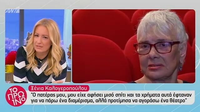 Η ξένια καλογεροπούλου γράφει μια ιστορία για δύο παιδιά γεννιούνται από τον ίδιο πατέρα, ο οποίος, παράλληλα, είναι και ο βασιλιάς του κράτους. Τελικά, κυρία καλογεροπούλου, όσα χρόνια κι αν περάσουν, όσο νερό κι αν κυλήσει στο αυλάκι, η πρώτη μεγάλη αγάπη δεν λησμονιέται ποτέ, δεν ξεθωριάζει; Η ξένια καλογεροπούλου στην εκπομπή « προσωπικα με την έλενα κατρίτση ». Τους χώρισε ο θάνατος το 2013. Η ξένια καλογεροπούλου γεννήθηκε το 1932 και είναι ελληνίδα ηθοποιός και θεατρική συγγραφέας.ο πατέρας της ήταν ιδιωτικός υπάλληλος ενώ η μητέρα της